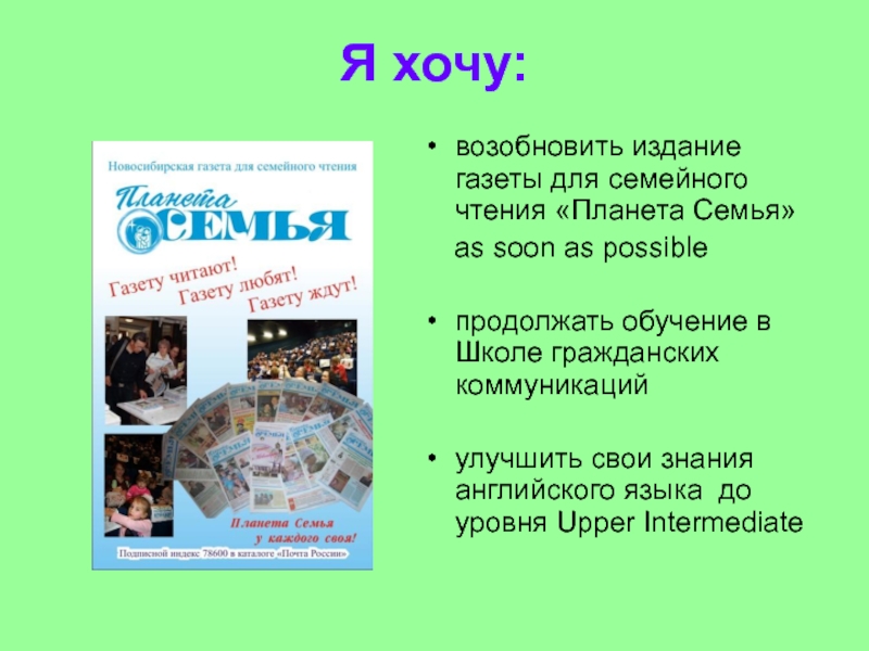 возобновить издание газеты для семейного чтения «Планета Семья»