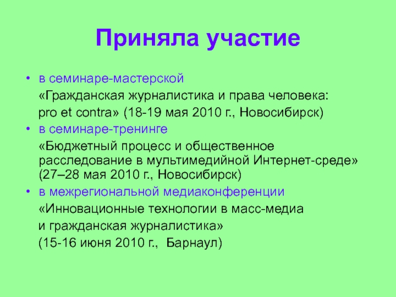и коллегам о том, что узнала и поняла на семинарах Школы гражданских коммуникаций.