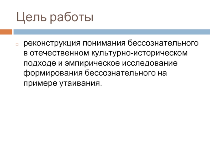 Объект исследования – бессознательное в культурно-историческом подходе