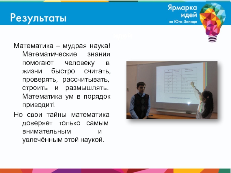 Слайд 12Математика – мудрая наука! Математические знания помогают человеку в жизни быстро