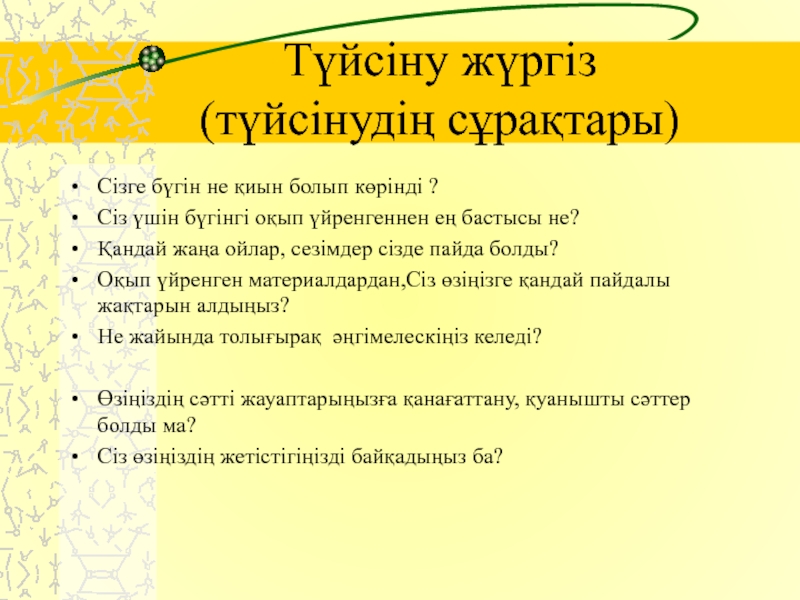 4. Сабақта оқушы түсініп, есте сақтауы тиіс негізгі материалды бөліп алу;