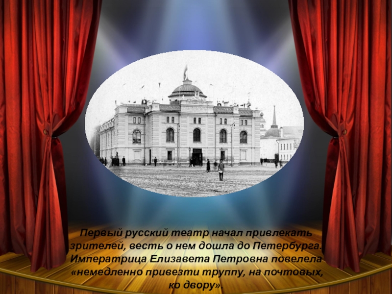 Слайд 8Первый русский театр начал привлекать зрителей, весть о нем дошла до