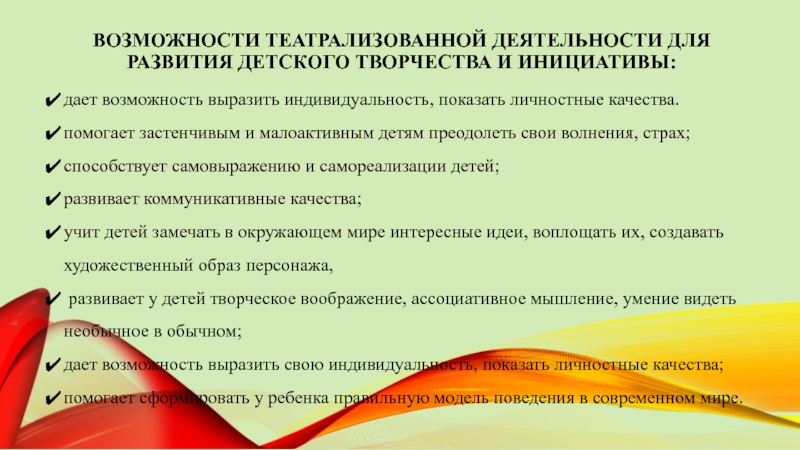обогащать опыт детей в различных видах деятельности и учить применять его в театрализованной деятельности.