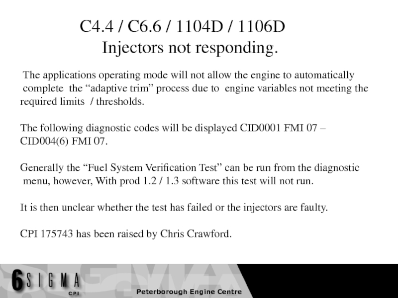 The following diagnostic codes will be displayed CID0001 FMI 07 –