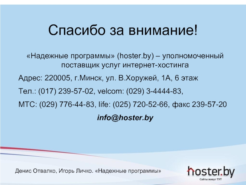 Денис Отвалко, Игорь Личко. «Надежные программы»
