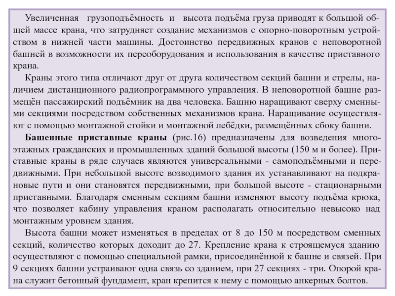 Слайд 30Поэтому масса груза, с которой могут передвигаться эти краны, значительно мень-ше,