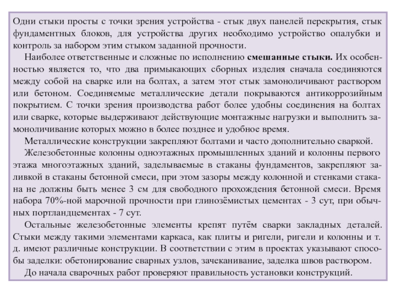 Слайд 25Работы по заделке стыков ведут в процессе монтажа и выполняют с