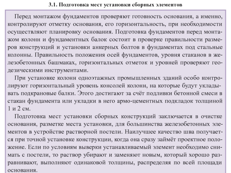 Слайд 33.1. Подготовка мест установки сборных элементов