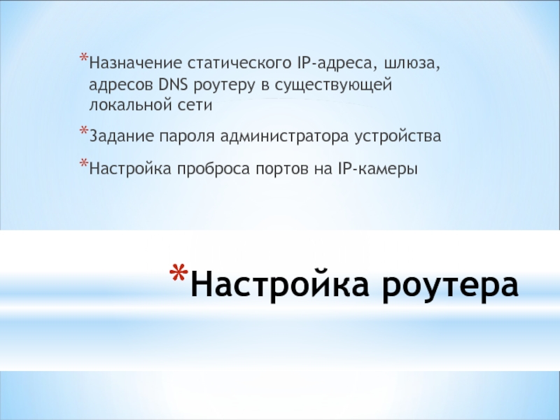 Назначение статического IP-адреса, шлюза, адресов DNS роутеру в существующей локальной
