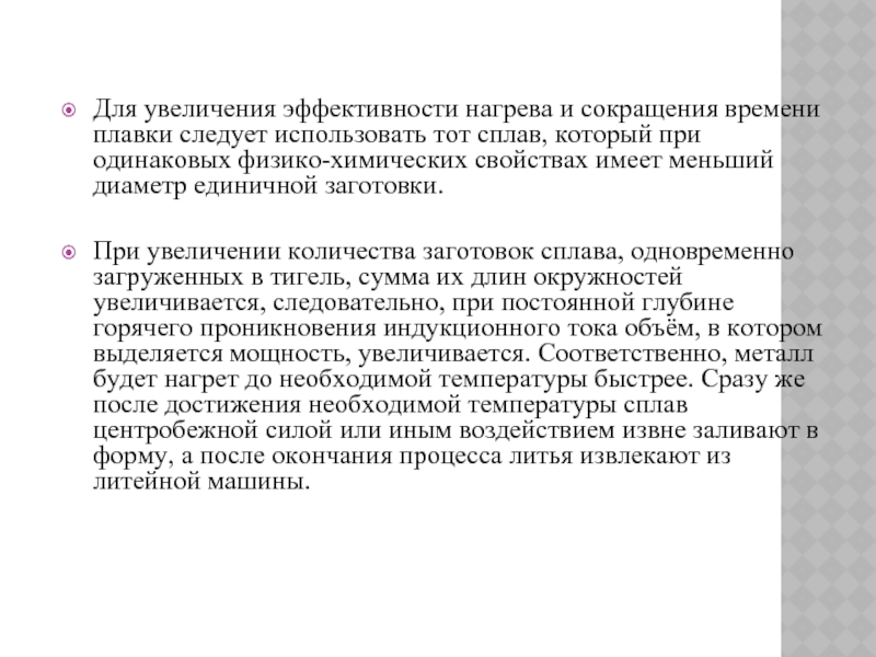 Слайд 23Для увеличения эффективности нагрева и сокращения времени плавки следует использовать тот