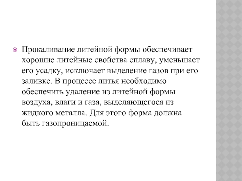 Прокаливание литейной формы обеспечивает хорошие литейные свойства сплаву, уменьшает его усадку,