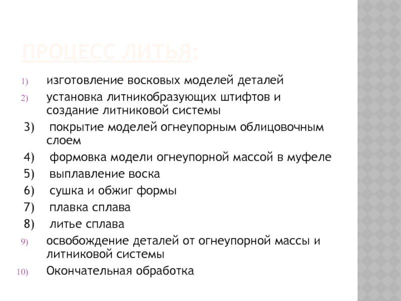Слайд 5ПРОЦЕСС ЛИТЬЯ: