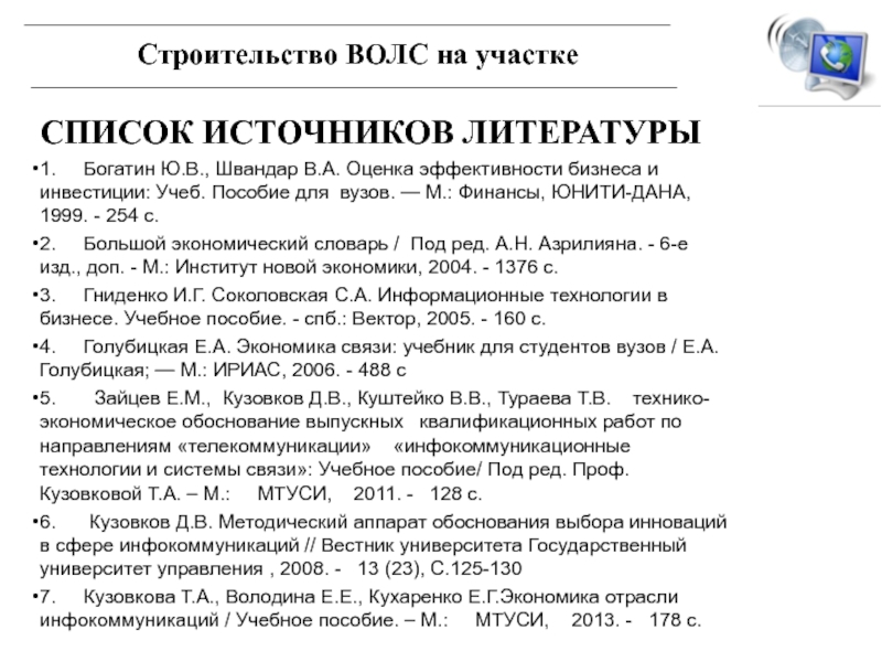 ТЕХНИКО-ЭКОНОМИЧЕСКОЕ ОБОСНОВАНИЕ ПРОЕКТА СТРОИТЕЛЬСТВА ВОЛС НА УЧАСТКЕ