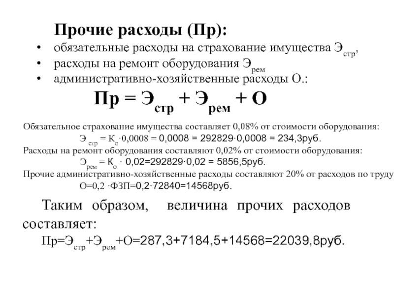 Таким образом, величина прочих расходов составляет: