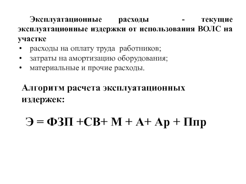 Алгоритм расчета эксплуатационных издержек: