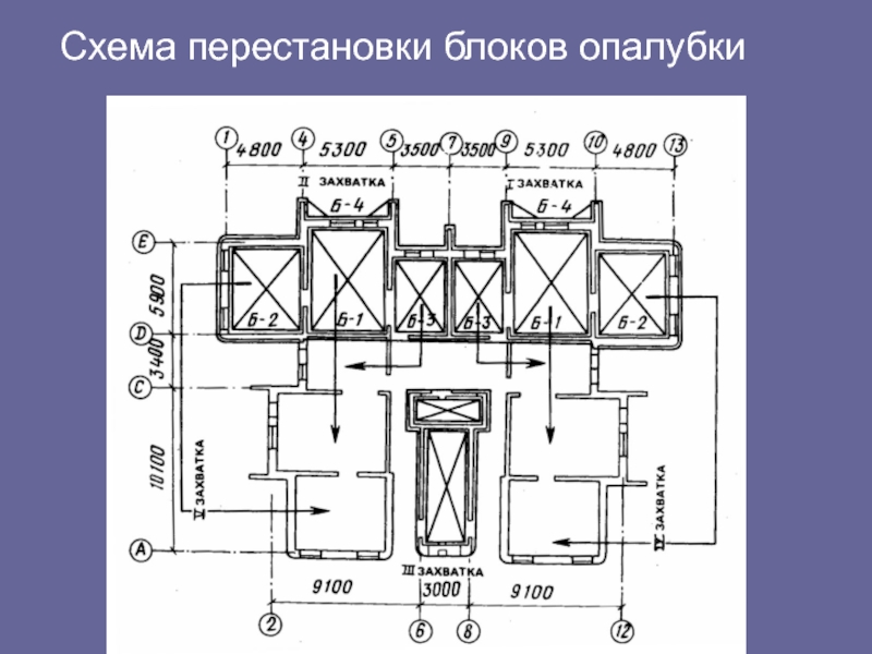 Слайд 17. Технологические схемы возведения монолитных зданий