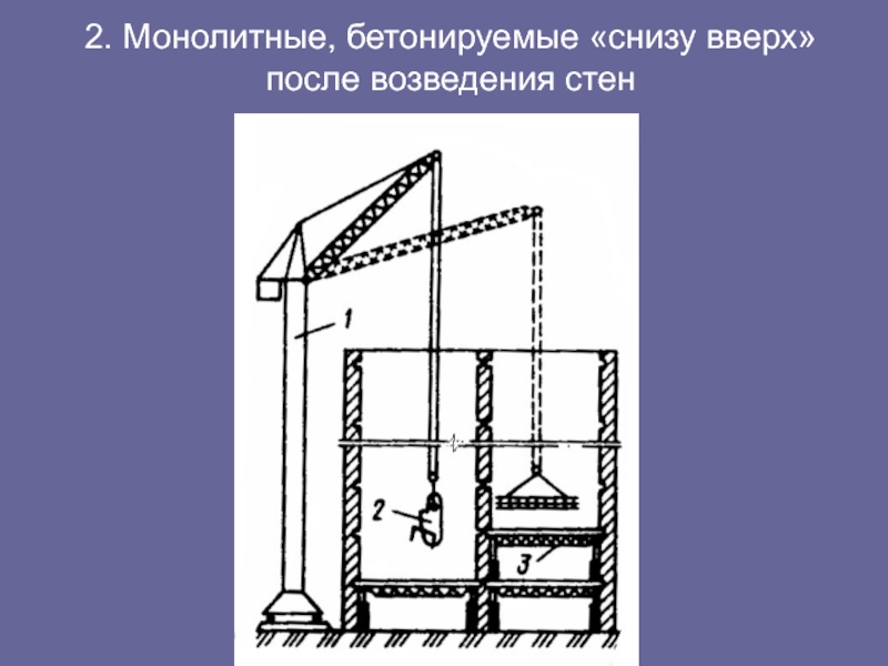Слайд 412. Монолитные, бетонируемые «снизу вверх»