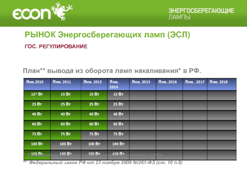 РЫНОК Энергосберегающих ламп (ЭСЛ)