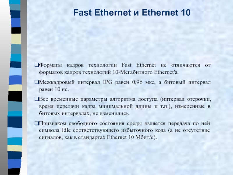 Слайд 8Основные параметры протокола Ethernet