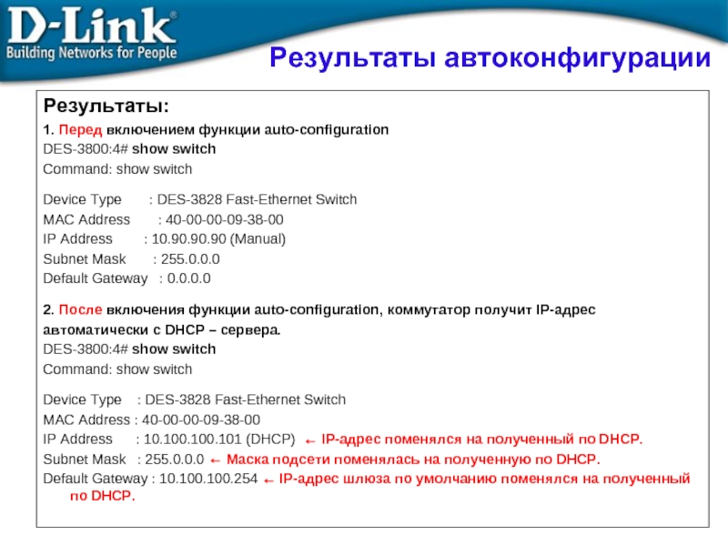 2. После включения функции auto-configuration, коммутатор получит IP-адрес