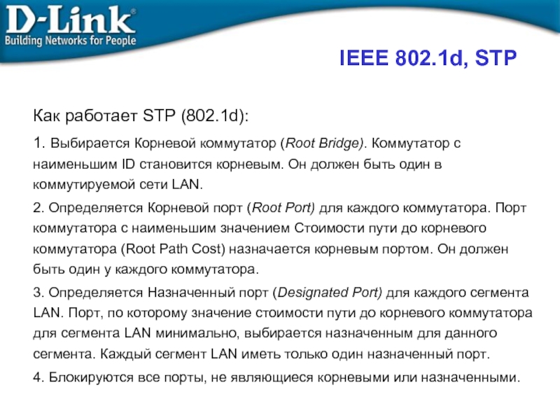 Слайд 1Технологии, применяемые при построении сетей на основе коммутаторов D-Link