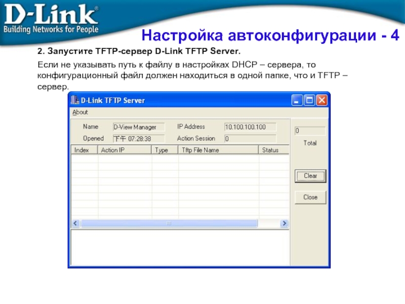 Слайд 1332. Запустите TFTP-сервер D-Link TFTP Server.