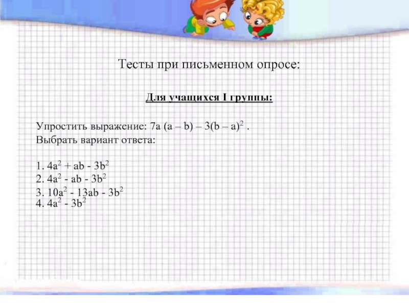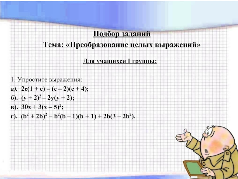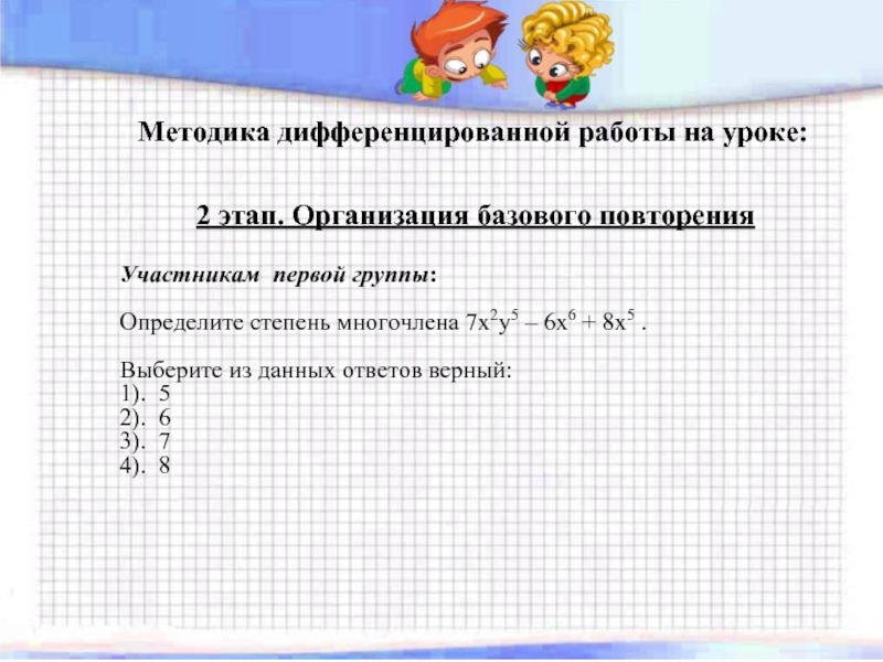 Участники второй группы сосредотачиваются на заданиях, требующих хорошего понимания основных положений темы.