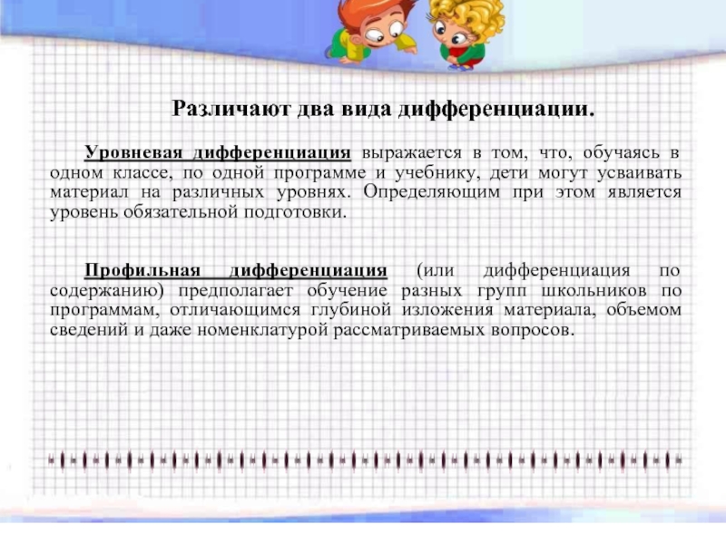 Уровневая дифференциация выражается в том, что, обучаясь в