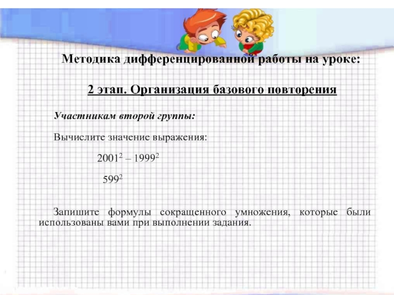 Запишите формулы сокращенного умножения, которые были использованы вами при выполнении задания.