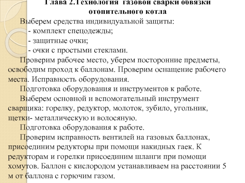 Глава 2.Технология газовой сварки обвязки отопительного котла