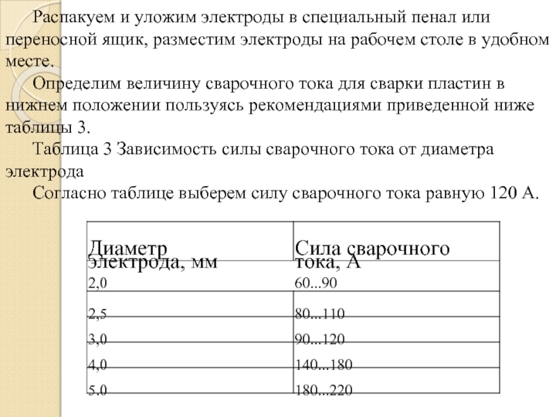 Таблица 3 Зависимость силы сварочного тока от диаметра электрода