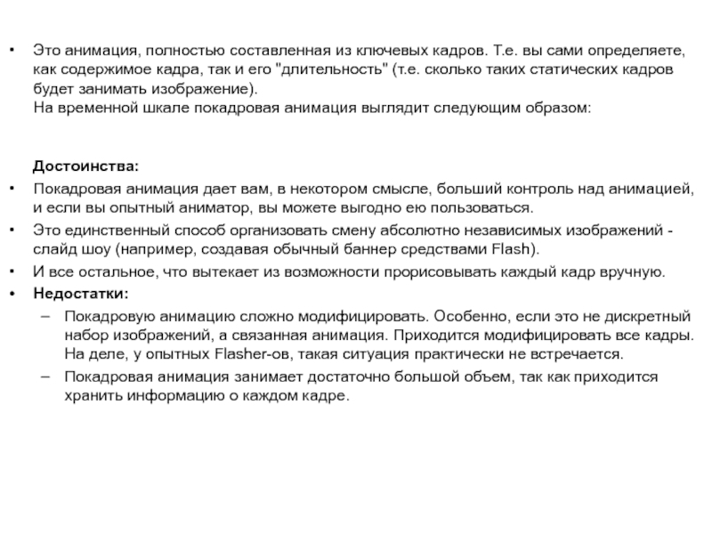 Покадровая анимация занимает достаточно большой объем, так как приходится хранить информацию о каждом кадре.