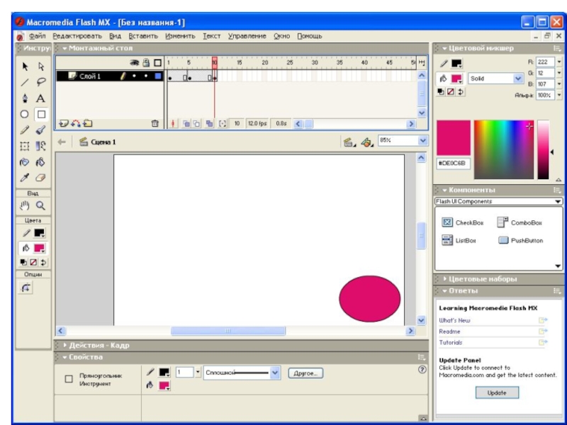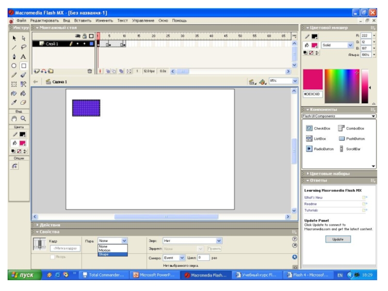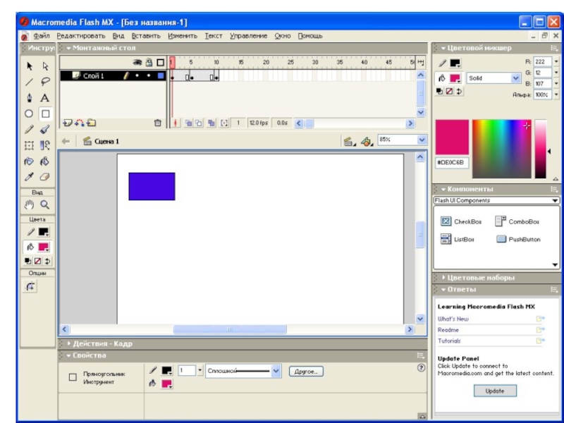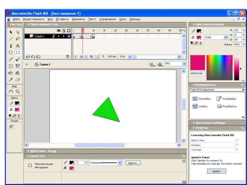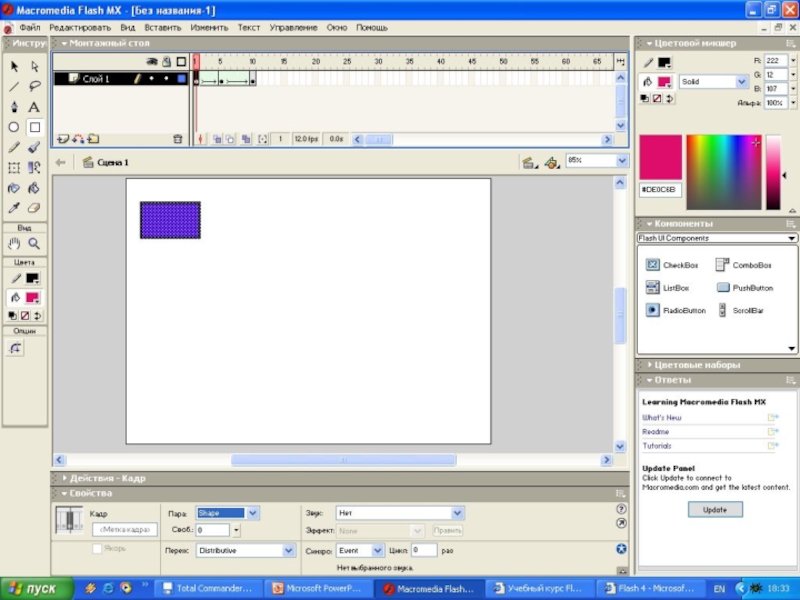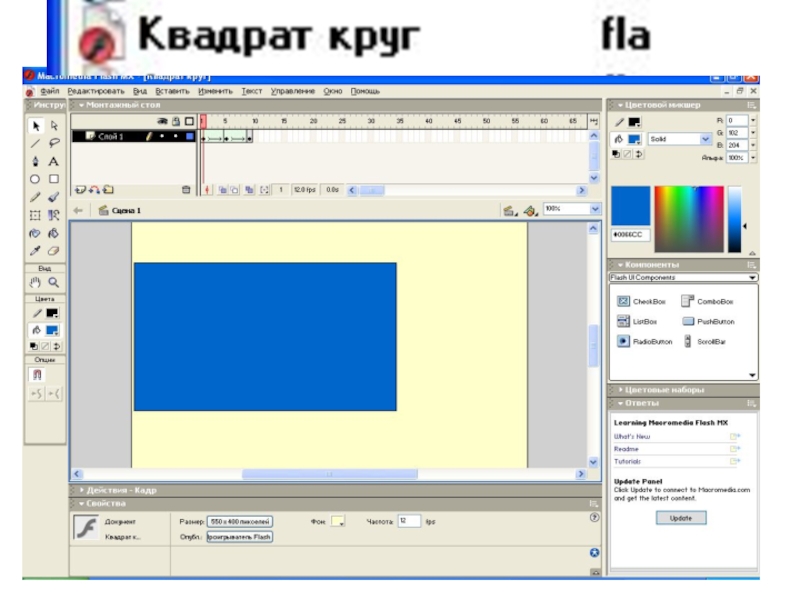 Flash MX – создание графики, анимации, кнопок, написание сценариев их