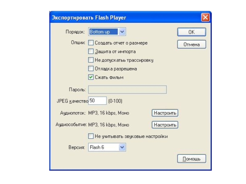 обеспечение экспорта Flash-фильмов в формат HTML, а также в любой из графических форматов, используемых в Интернете;