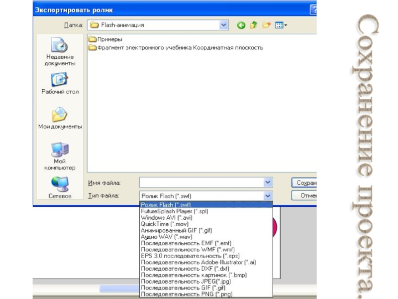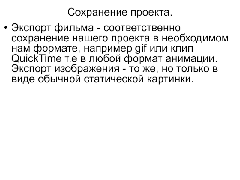 Экспорт фильма - соответственно сохранение нашего проекта в необходимом нам