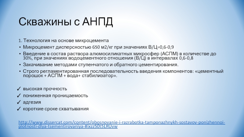 Слайд 1Технология и материалы цементирования скважин в условиях аномально низких пластовых и