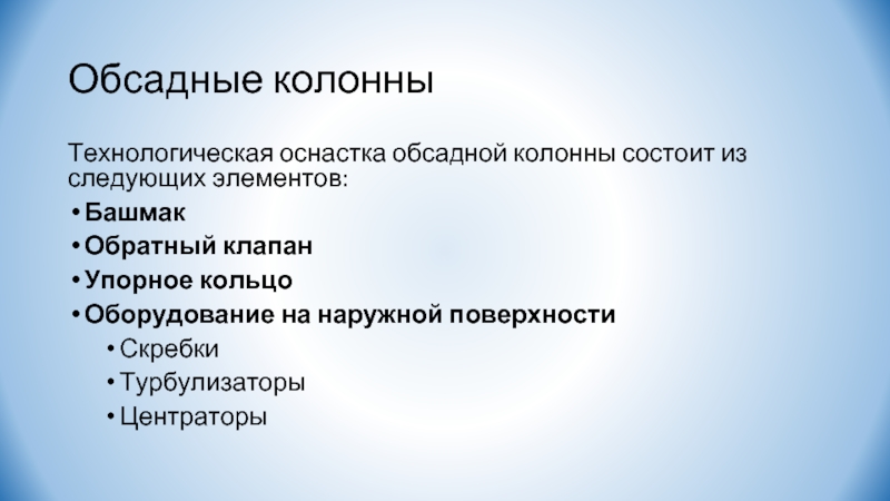 Технологическая оснастка обсадной колонны состоит из следующих элементов: