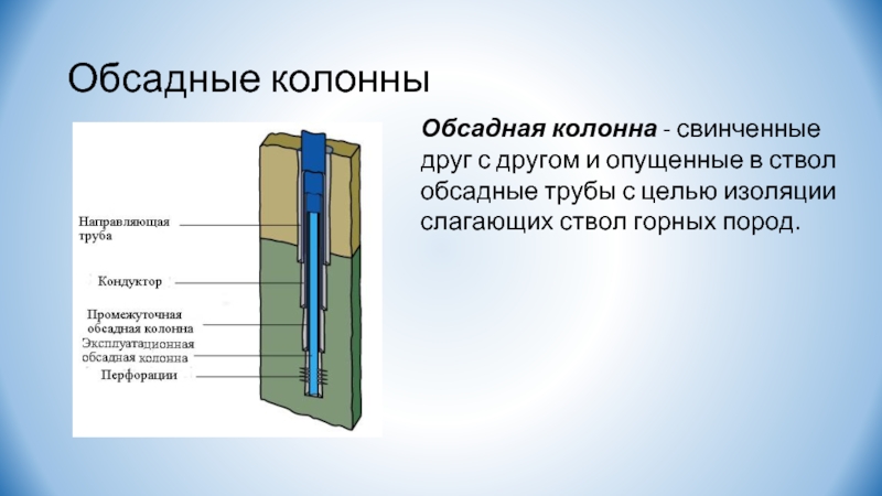 обсадные трубы с целью изоляции слагающих ствол горных пород.
