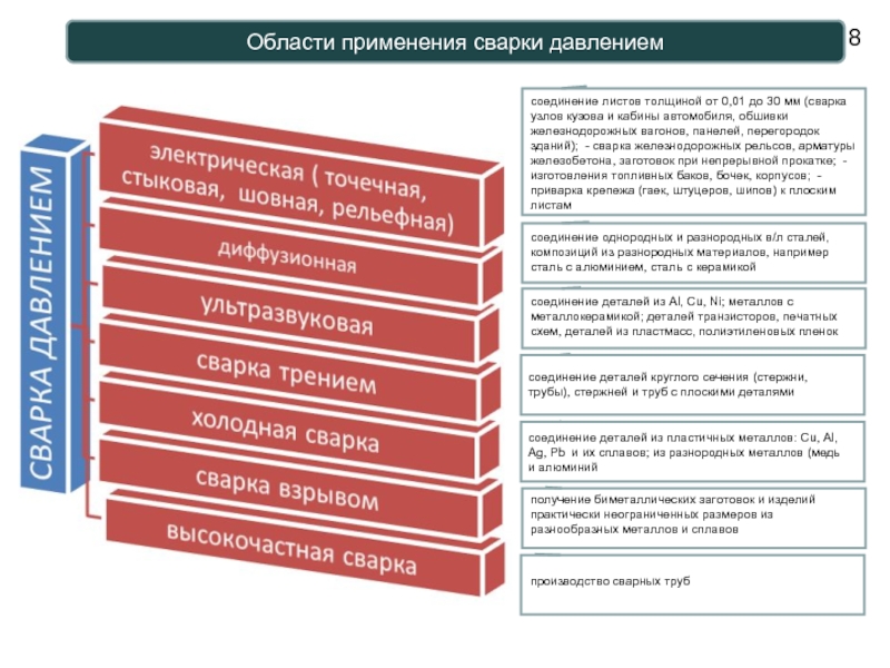 соединение деталей из пластичных металлов: Cu, Al, Ag, Pb и их сплавов; из разнородных металлов (медь и алюминий