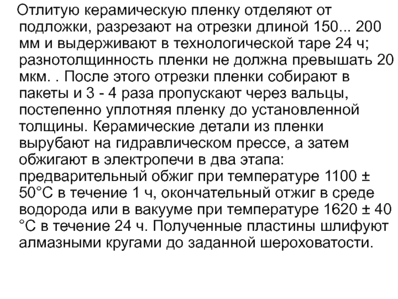 строгое соблюдение режимов и последовательности операций процесса производства;