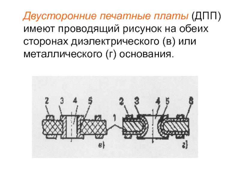 Слайд 13 Двусторонние печатные платы (ДПП) имеют проводящий рисунок на обеих