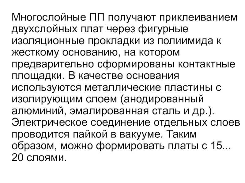 Слайд 15 Многослойные печатные платы (МПП) состоят из чередующихся слоев изоляционного