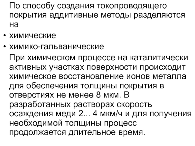 Слайд 19 Аддитивные методы основаны на избирательном осаждении токопроводящего покрытия на