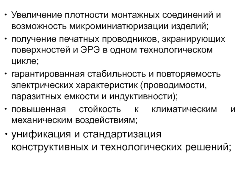 Слайд 4Увеличение плотности монтажных соединений и возможность микроминиатюризации изделий;