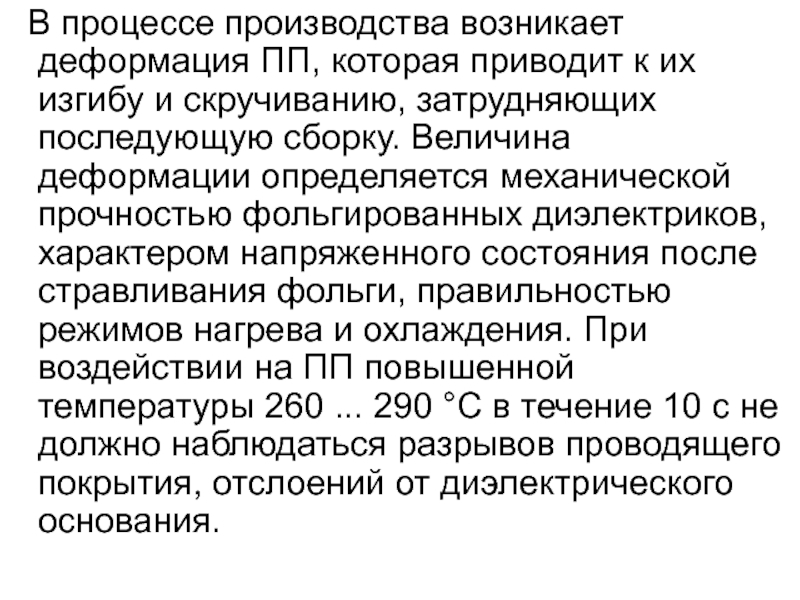 Слайд 10 В процессе производства возникает деформация ПП, которая приводит к их