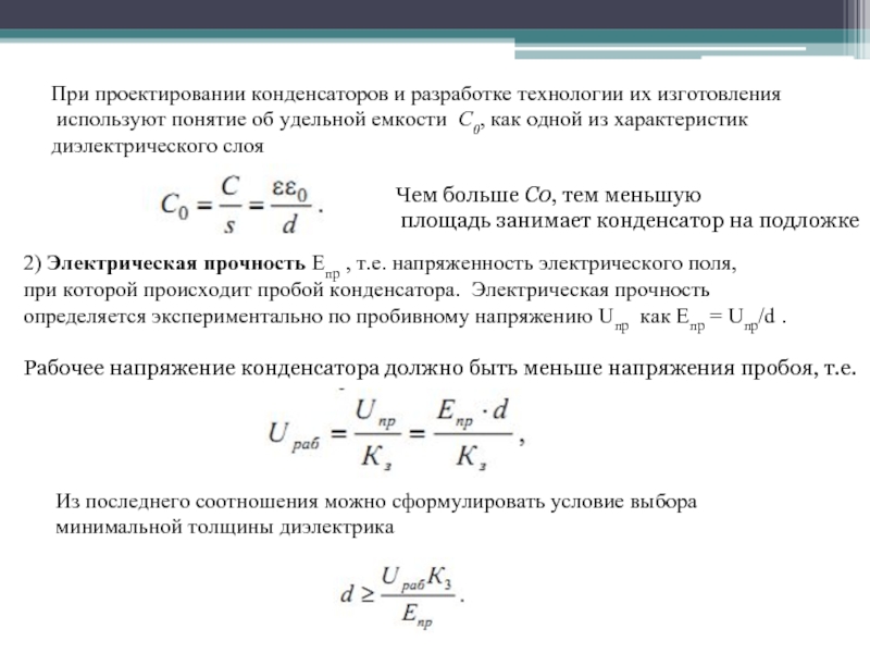 Рабочее напряжение конденсатора должно быть меньше напряжения пробоя, т.е.
