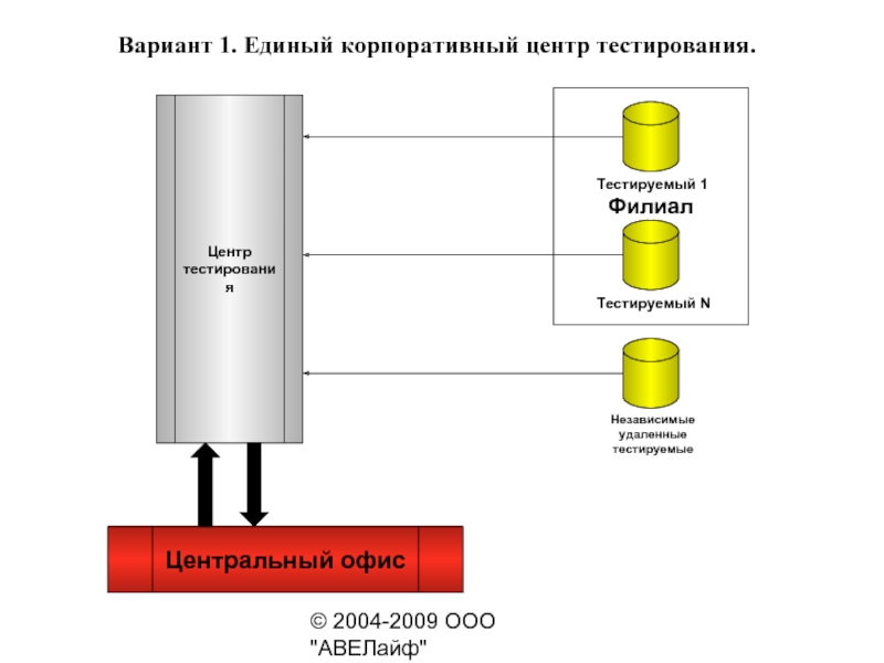 Вариант 2. Удаленный контроль центров тестирования филиалов.