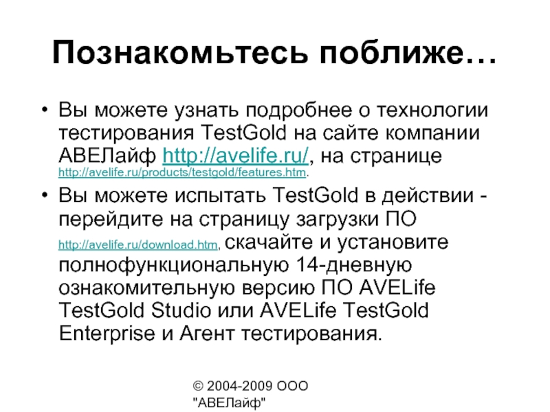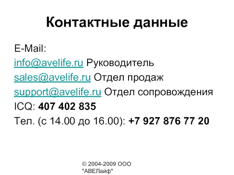 Слайд 1© 2004-2009 ООО "АВЕЛайф" http://avelife.ru/
