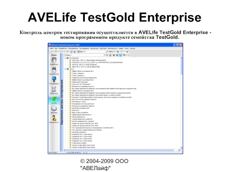 центров тестирования осуществляется в AVELife TestGold Enterprise - новом программном продукте семейства TestGold.