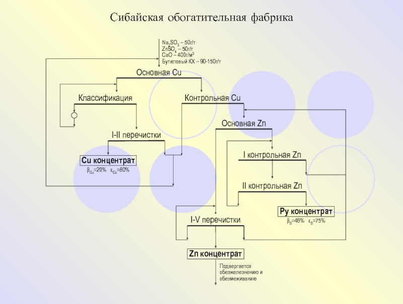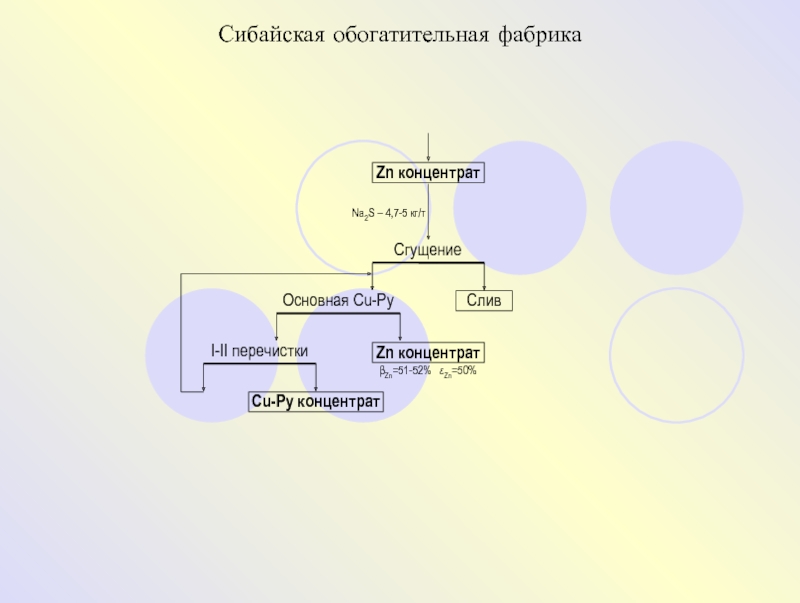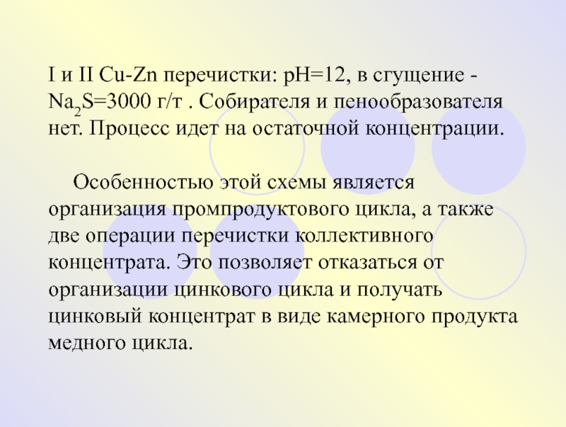 Слайд 39I и II Cu-Zn перечистки: pH=12, в сгущение - Na2S=3000 г/т